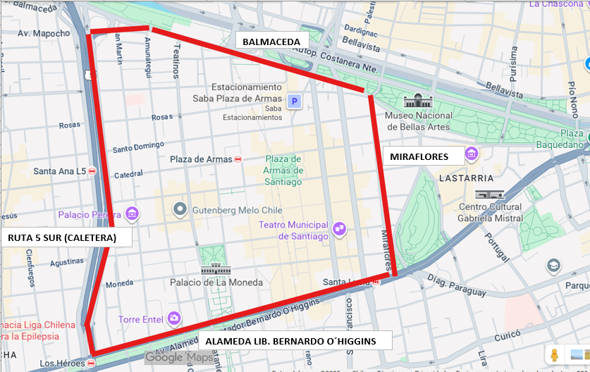 Solo se realizan despachos los sábados, en el siguiente cuadrante: